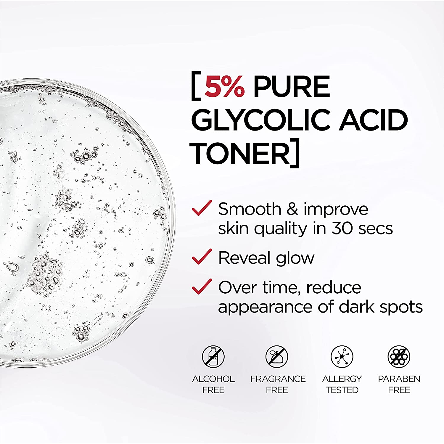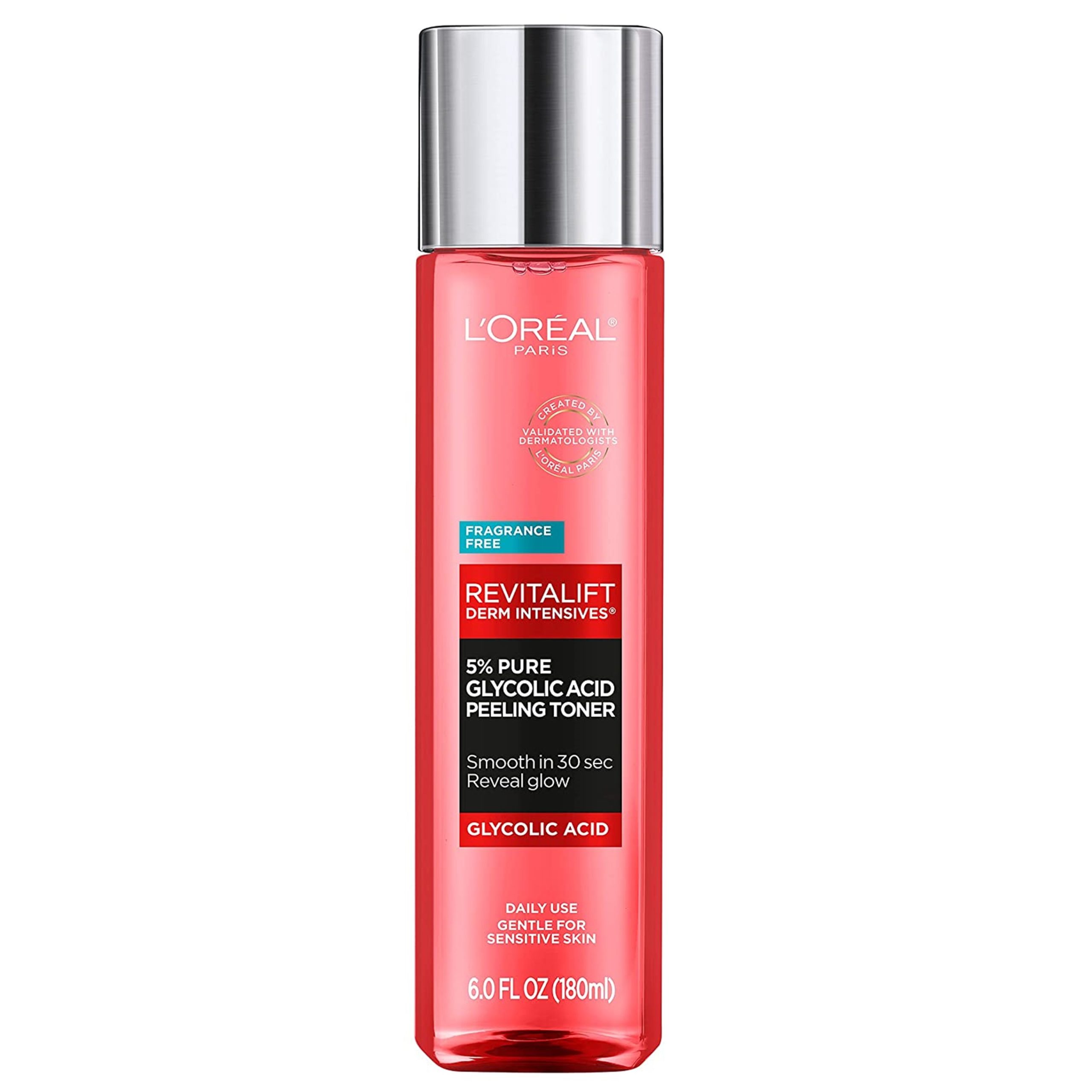 Revitalift Derm Intensives 5% Pure Glycolic Acid peeling toner was validated by a panel of dermatologists that certified that the product upholds to strict formulation standards and reviewed third party clinical testing and protocols.