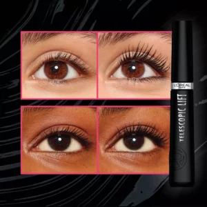 Lift your lashes to the next level with Telescopic Lift Mascara Black. Get instant lash lift, volume and up to +5MM Visible Length for up to 36-hour wear. L’Oreal Paris’s Exclusive load and lift double-hook bristle brush catches and charges every lash. This length and volume mascara is easy to apply and comes in 3 washable mascara shades and 1 water proof mascara shade.