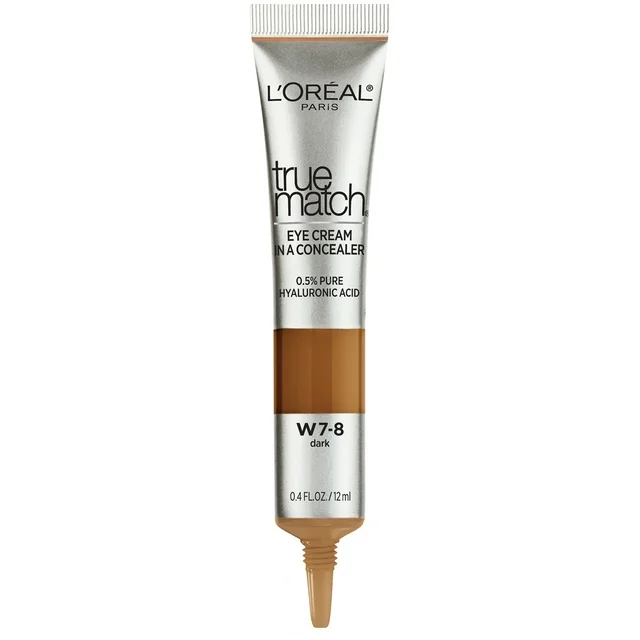 L’Oreal Paris True Match Pure Hyaluronic Acid Eye Concealer, W7-8 Dark, Care and Coverage: the perfect match. True Match Eye Cream in a Concealer provides instant dark circle coverage with the care of an eye cream. 24 hour hydration for an eye area that looks fresher and less puffy in 1 week*. Formulated with 0.5% pure hyaluronic acid- top recommended dermatologist ingredient. This formula is fragrance free, paraben free and non comedogenic. Dermatologist and ophthalmologist tested for safety. Suitable even for sensitive skin.