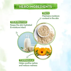 Hi! I am Mamaearth Milky Soft Body Lotion crafted especially for your little one! I am the superhero that moisturizes your baby’s delicate skin. I kiss away dryness and lock the skin’s natural oils to help your munchkin’s skin soft all day long.Enriched with the natural goodness of Oats, Milk and Calendula, I offer gentle and safe care to your munchkin by making their skin supple and soft. Oat Milk has immense moisturizing and soothing properties that help in getting rid of dry and itchy skin, while Calendula is rich in Vitamin E & amino acids, leaving skin deeply nourished.I am also MadeSafe Certified and because of our no toxins and no harmful chemicals philosophy, you won’t find any Silicones, Parabens, mineral oil & dyes.