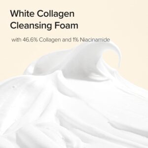 - This cleansing foam contains 46.6% collagen and 1% Niacinamide that lathers up to a rich, creamy foam, effectively and thoroughly removes impurities to restore bright and translucent skin.