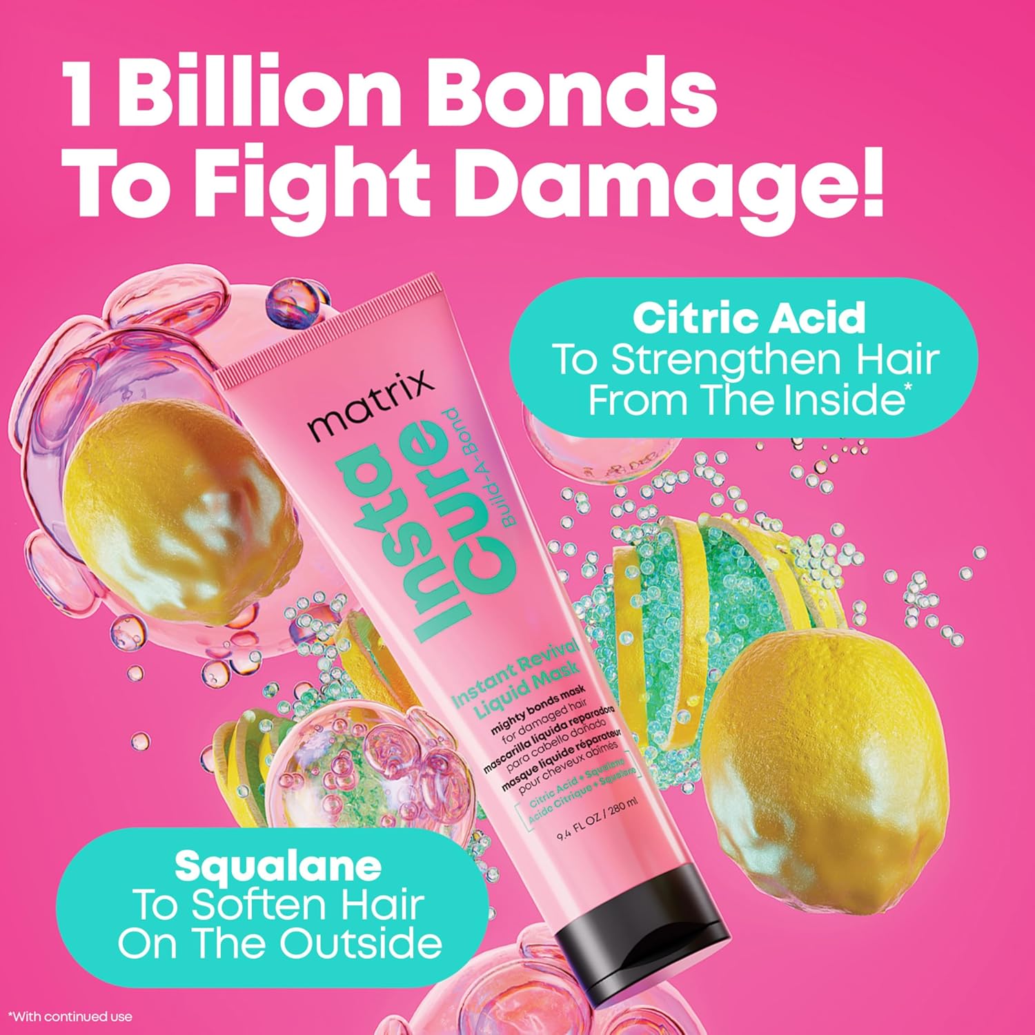 Matrix Instacure Build-A-Bond Instant Revival Liquid Mask – Strengthening Hair Repair For Very Damaged Hair, Citric Acid & Squalane, Softens & Smooths, Vegan & Sulfate-Free