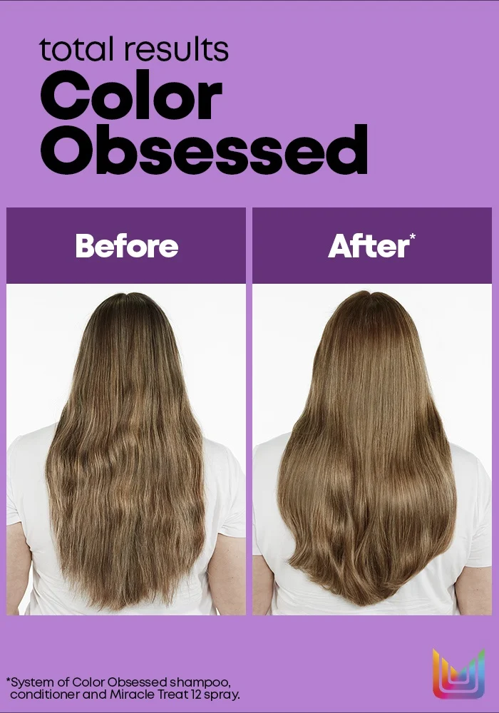 Lasting, brilliant hair color can be difficult to maintain. With the Total Results Color Obsessed Conditioner color treated hair is renewed and preserved with moisture to help strengthen porous, damaged hair. This conditioner has antioxidants and protects against fading, refreshes root lift and extends the life of color vibrancy. This professional hair protectant conditions, volumizing hair without weighing it down and gives brilliant shine