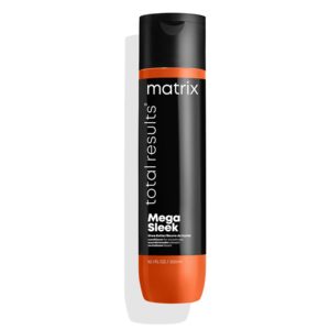Mega Sleek Conditioner with smoothing shea butter helps control rebellious, unruly hair and manages frizz against humidity for smoothness.