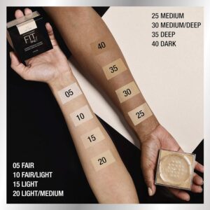 - A Shade That Fits Me: Maybelline Fit Me finishing powder provides coverage for a wide array of skin tones, from Ivory to Mocha; Use as a setting powder or to control shine for a flawless, natural-looking, “I woke up like this” finish