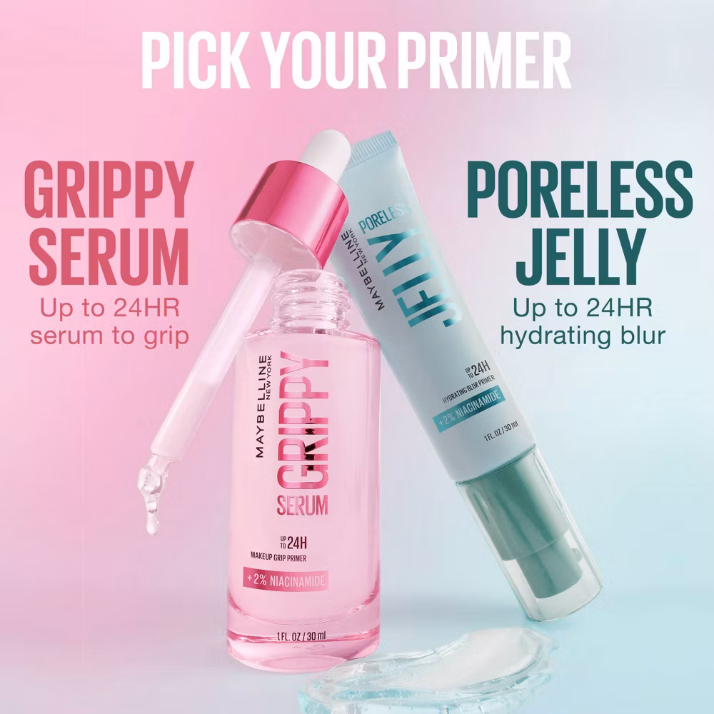 Maybelline Grippy Serum Makeup Gripping Primer with Niacinamide – 1 fl oz