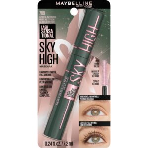 Sky High lash impact from every angle! Maybelline’s Lash Sensational Sky High lengthening green mascara delivers full volume and limitless length. Exclusive Flex Tower mascara brush bends to volumize and extend every single lash from root to tip. Washable mascara formula infused with bamboo extract and fibers for long, full and lightweight lashes, that don’t flake or smudge. Allergy tested. Ophthalmologist tested. Suitable for sensitive eyes and contact lens wearers. Removes easily.