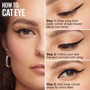 4 Maybelline Eyeliner Shades: Available in 4 saturated shades that lasts for up to 24HRs; Discover Black Track, Brown Expression, Burgundy Boost and White Canvas; Go easily from thin to thick lines for a graphic liquid eye liner look that stays put