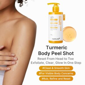 medicube Body Peel Shot with Turmeric | Gentle Body Exfoliating Serum with BHA, LHA & PHA for Dead Skin Cells, Uneven Looking Skin & Excess Sebum | 9.46 fl.oz