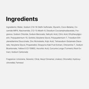- [BRIGHTER SMOOTHER SKIN] Transform your daily shower into a brightening routine. Formulated with Kojic Acid, Turmeric, and Niacinamide, this rich yet gentle body wash helps visibly uneven skin tone and smooth texture caused by dryness, sweat, and impurities.