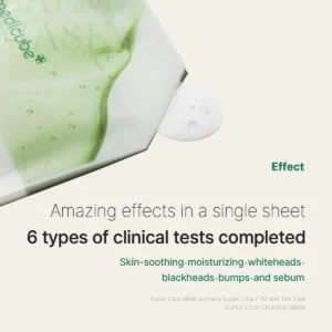 - This sheet mask, infused with Centella Asiatica Extract and Super Cica 7, provides intense calming relief to soothe irritated skin.