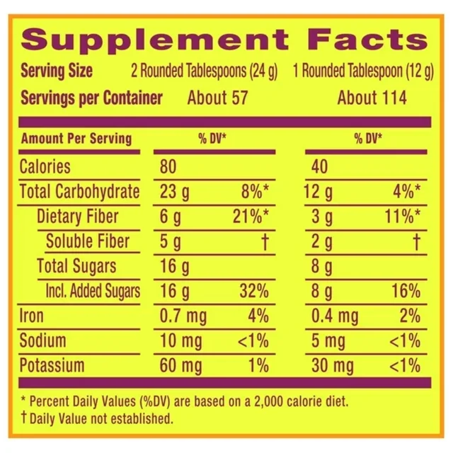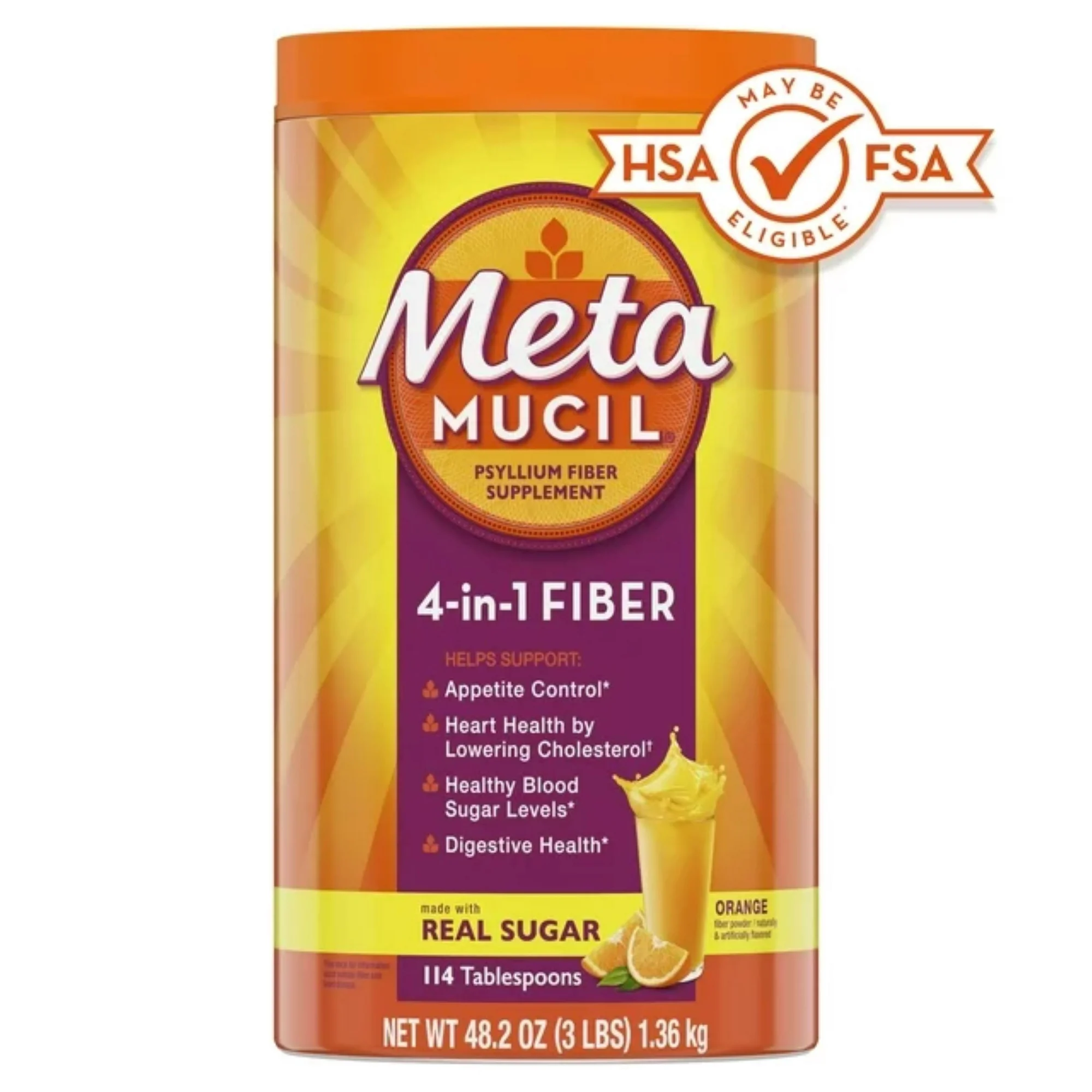- Metamucil Daily Fiber Supplement, Psyllium Husk Fiber Powder for Digestive Health, Orange, 114 Ct