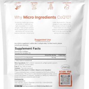 - Micro Ingredients offers highly absorbable CoQ10 Softgels with Coconut MCT Oil for easy digestion, delivering 100mg of coenzyme Q10 as ubiquinone per serving.