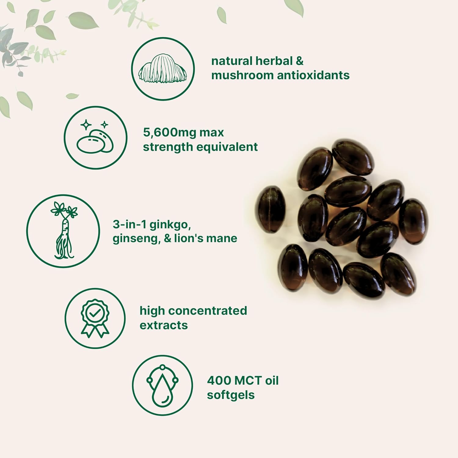 - Softgels are infused with natural MCT oil from coconut to enhance absorption and bioavailability of the botanical extracts, delivering key active compounds such as polysaccharides, ginsenosides, and ginkgo flavone glycosides.
