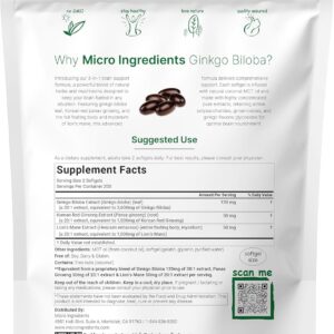 Micro Ingredients Ginkgo Biloba & Ginseng 5,600mg Equivalent, 400 Softgels | 6 Month Supply | Triple Strength Ginko Biloba & Lions Mane Memory Supplement for Brain, Mood & Cognitive Health