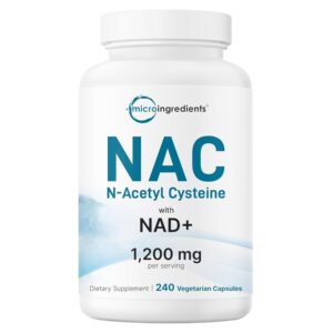 Micro Ingredients NAC with NAD+, 240 Vegetarian Capsules | 1,200 mg Per Serving | 2-in-1 N-Acetyl-L-Cysteine with Nicotinamide Adenine Dinucleotide | Non-GMO, cGMP Manufactured