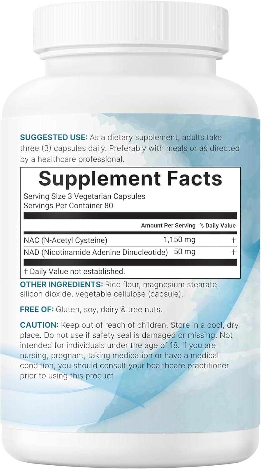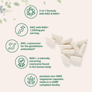 - Premium NAC with NAD+ vegetarian capsules made with non-GMO ingredients in a cGMP compliant facility. Free from gluten, soy, dairy, and tree nuts. Third-party lab tested for safety, purity, and potency.