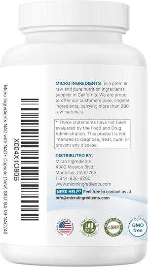 - Micro Ingredients offers a dual-action complex combining NAC (N-Acetyl-L-Cysteine) with NAD+ (Nicotinamide Adenine Dinucleotide) in a convenient, capsule-based format suitable for both men and women.