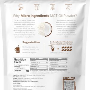 Micro Ingredients Organic MCT Oil Powder with Prebiotic Fiber,1 Pound(16 Ounce), Fast Fuel for Body and Brain,Vegan