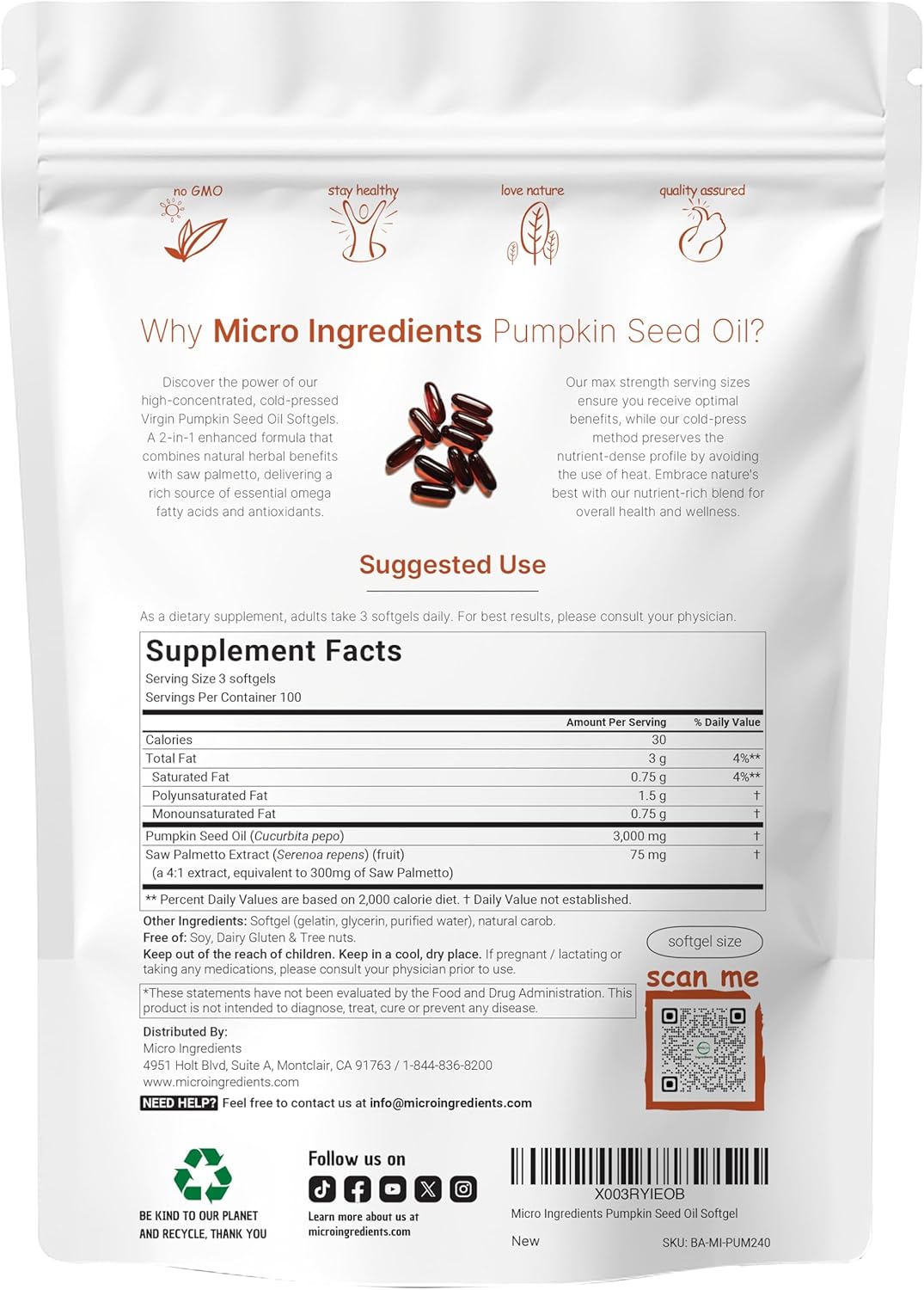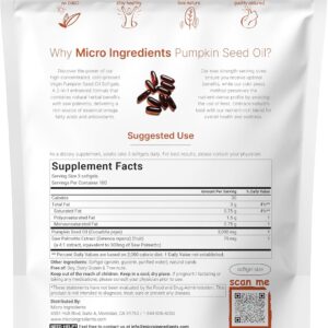 - Micro Ingredients offers max strength virgin pumpkin seed oil softgels, high concentrated cold-pressed ingredients, 2-in-1 complex with saw palmetto extract, retains essential fatty acids, phytosterols, and antioxidants.