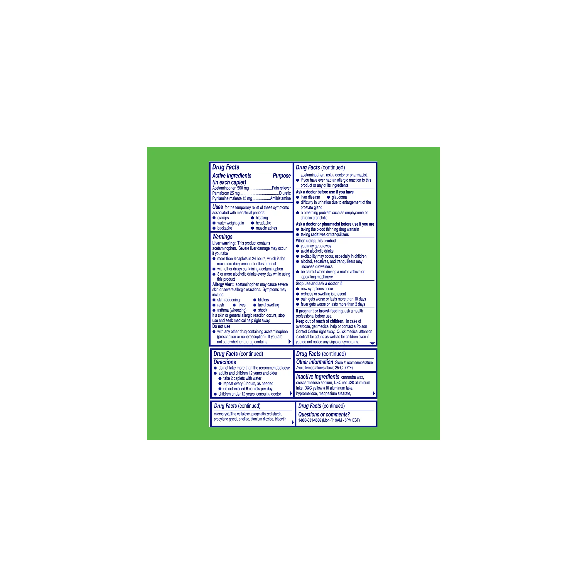 • MULTI-SYMPTOM PERIOD RELIEF: Contains pamabrom to combat bloating and acetaminphen to relieve cramps