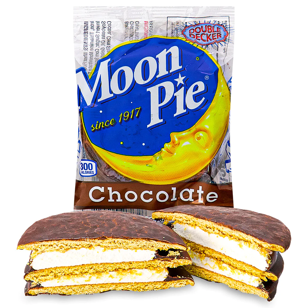 A tasty treat to satisfy your sweet tooth with the scrumptious taste of Moon Pie double-decker chocolate marshmallow sandwich. The classic snack features a marshmallow creme center surrounded by a chocolate-flavored coating. Enjoy them alone, microwave, or dunk them in milk for a richer treat