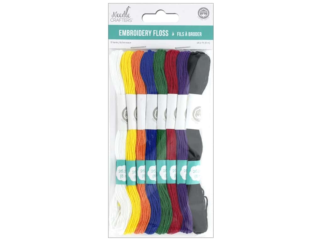 Multicraft Cord is perfect for jewelry projects and any other craft projects you may have. Needlecrafter Embroidery Floss 6 Strand Cotton Basic- For needlework, crafting, friendship bracelets, card making, kid’s craft activities and more. Colors are white, yellow, orange, navy, green, red, purple and black. Each skein has 26.2 feet.