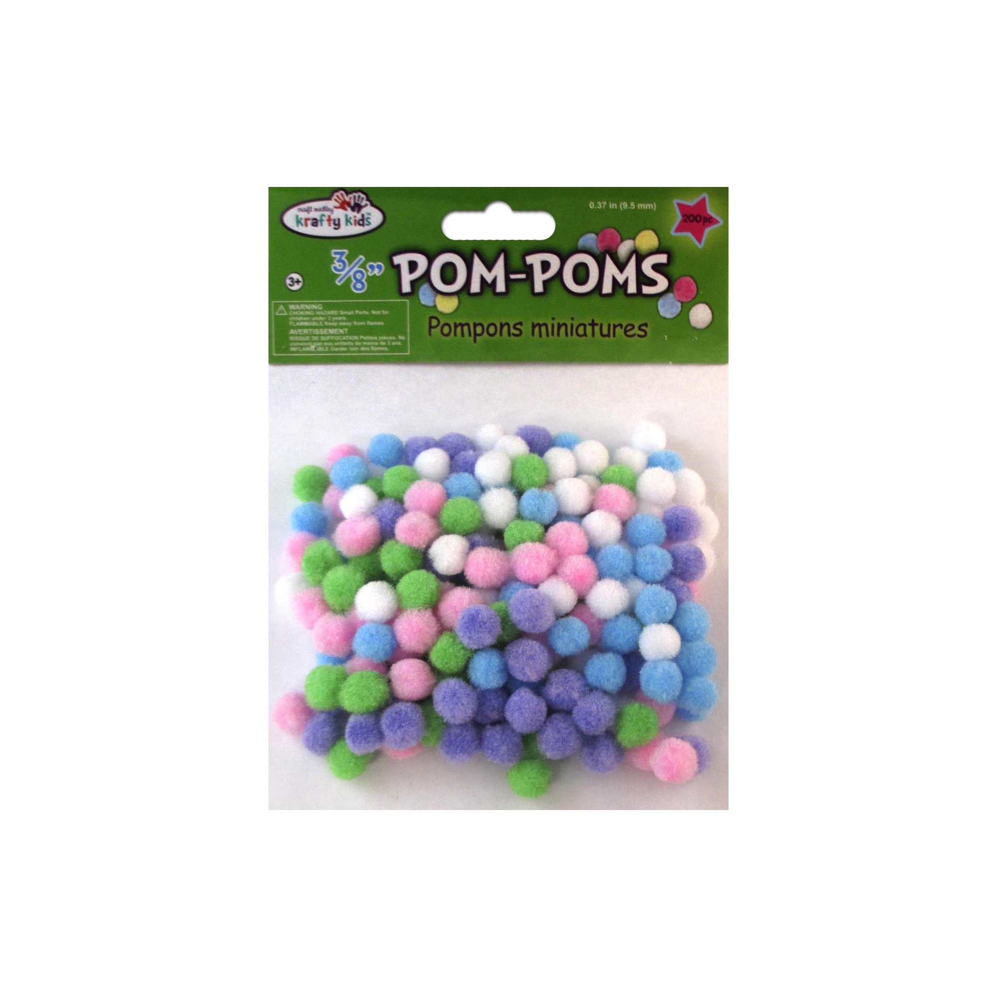 Multicraft Krafty Kids has the supplies you need to keep the kids busy for hours creating craft projects! From beading and building to painting and drawing, you’ll find an item for everyone to enjoy. Pom Poms 10mm Pastel 200pc- Great for all types of kid’s craft projects. Colors are Pastel Pink, Blue, Purple, Green, and White. Size is approximately 3/8″. For ages 3 and up.