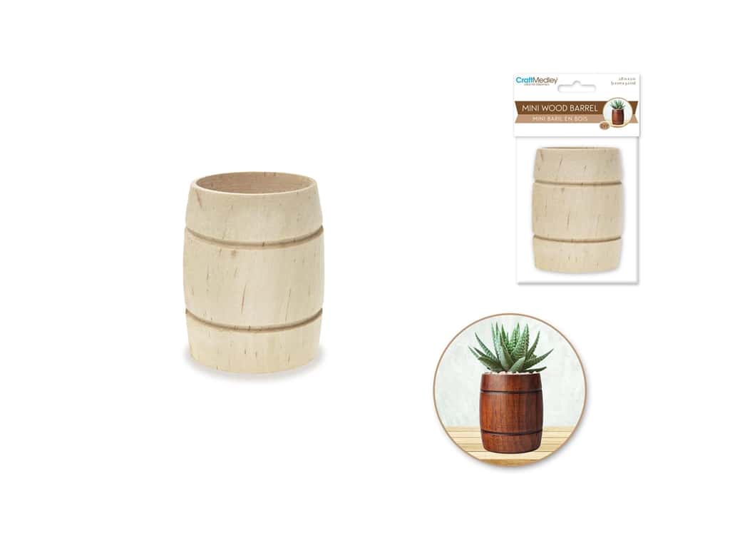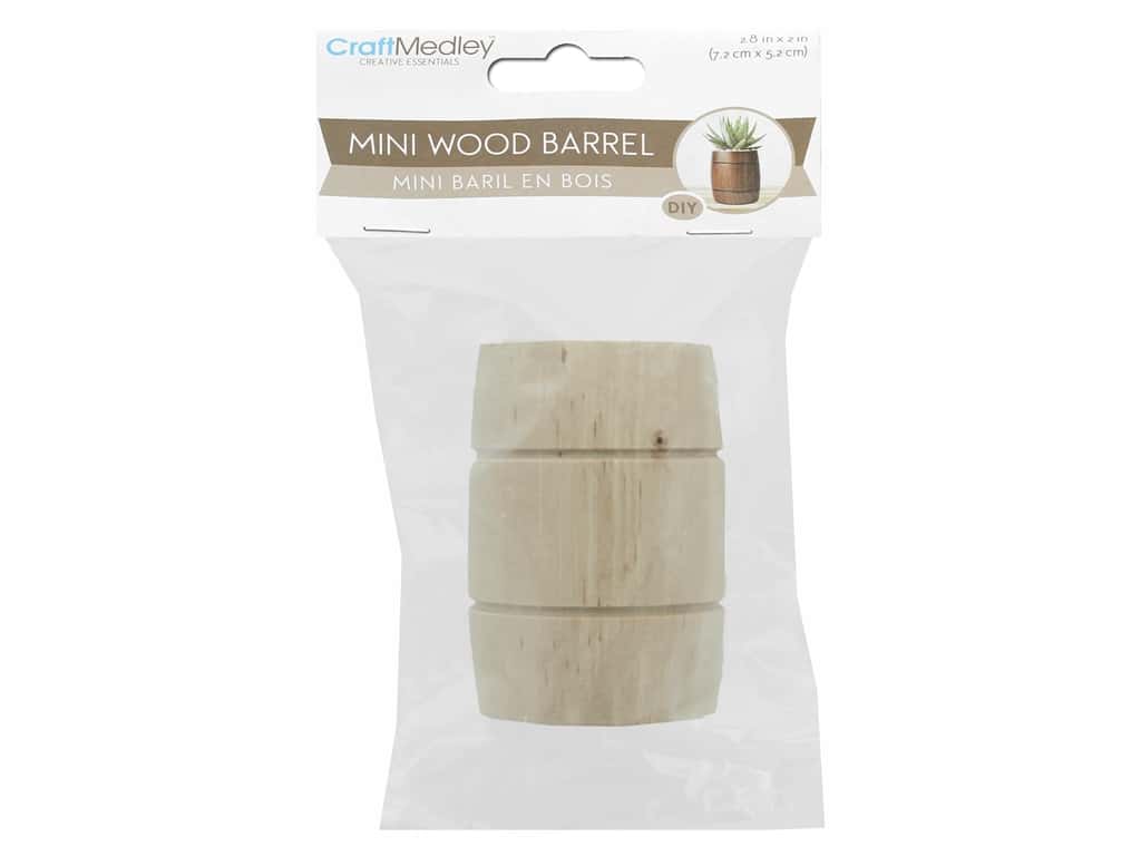 Multicraft Wood are an assortment of cute, clever and useful items created from wood. Some may need to be finished before they can be used around the house or given as gifts to family and friends. Barrels Mini 7.2 x 5.2 cm -(2.8 in. x 2 in.) Unfinished wooden barrels. Use with paints, stains, embellishments, and more. Great for models, dioramas, doll houses, miniature gardens, and more.