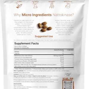 - Micro Ingredients offers a 7-in-1 max strength nattokinase softgel formula delivering 4,000 FU (200mg) per serving, made with MCT oil for gentle absorption and enteric-coated to protect sensitive ingredients for optimal heart and circulation support.