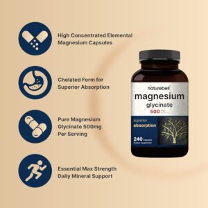 NatureBell Magnesium Glycinate Capsules 500mg | 240 Count |