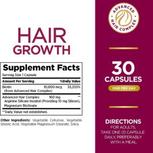 Nature’s Bounty Hair Growth Supplement, 1 Per Day, Support Thicker, Fuller Hair, with Biotin, Silicon & Arginine, 30 Capsules