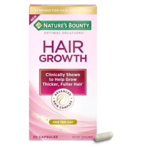 Nature’s Bounty Optimal Solutions Hair Growth with Advanced Hair Complex is clinically shown to help grow thicker, fuller hair in three months. (1) As we age, hair follicles can change, making hair appear less thick and healthy. Brought to you from the Number 1 Brand For Hair, Skin & Nails (2), our formulation with ADVANCED HAIR COMPLEX delivers vital nutrients to the hair follicles to help nourish and grow thicker, fuller hair. (1) This innovative new supplement for hair growth contains Biotin, Silicon and Arginine, which are key nutrients for providing structural support for existing hair growth and increased thickness. (1) You’ll love the convenient one-per-day formula and competitive price point. And if you’re looking for hair growth pills that fit your lifestyle and dietary preferences, look no further—Nature’s Bounty Optimal Solutions Hair Growth is non-GMO, gelatin-free, and suitable for vegetarians.
