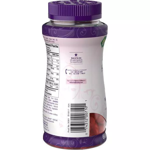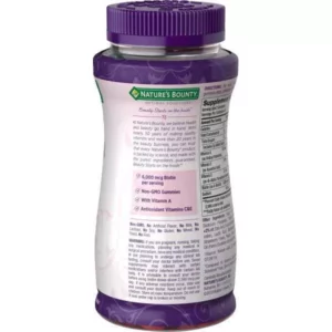 Give your beauty routine an upgrade with new Nature’s Bounty® Advanced Hair Skin & Nails Gummies! Packed with 2x the amount of Biotin as our leading Hair, Skin & Nails gummy formula, each serving contains 6,000mcg of Biotin to support beautiful hair, glowing skin, and healthy nails.* Bursting with the same delicious strawberry flavor as our original Hair, Skin & Nails Gummies, our Advanced formula is Non-GMO and now includes Vitamin A which plays an essential role in maintaining skin health.* Our Advanced Hair, Skin & Nails Gummies also contain antioxidants Vitamin C and Vitamin E. Vitamin C is involved in the production and formation of collagen, acting as the basis for glowing skin, while Vitamin E is a nutrient that is found on the outermost skin surface.* As an added bonus, our delicious gummies are and made from naturally sourced colors and flavors, making them the perfect supplement to your beauty regimen from the #1 Brand for Hair, Skin & Nails.*