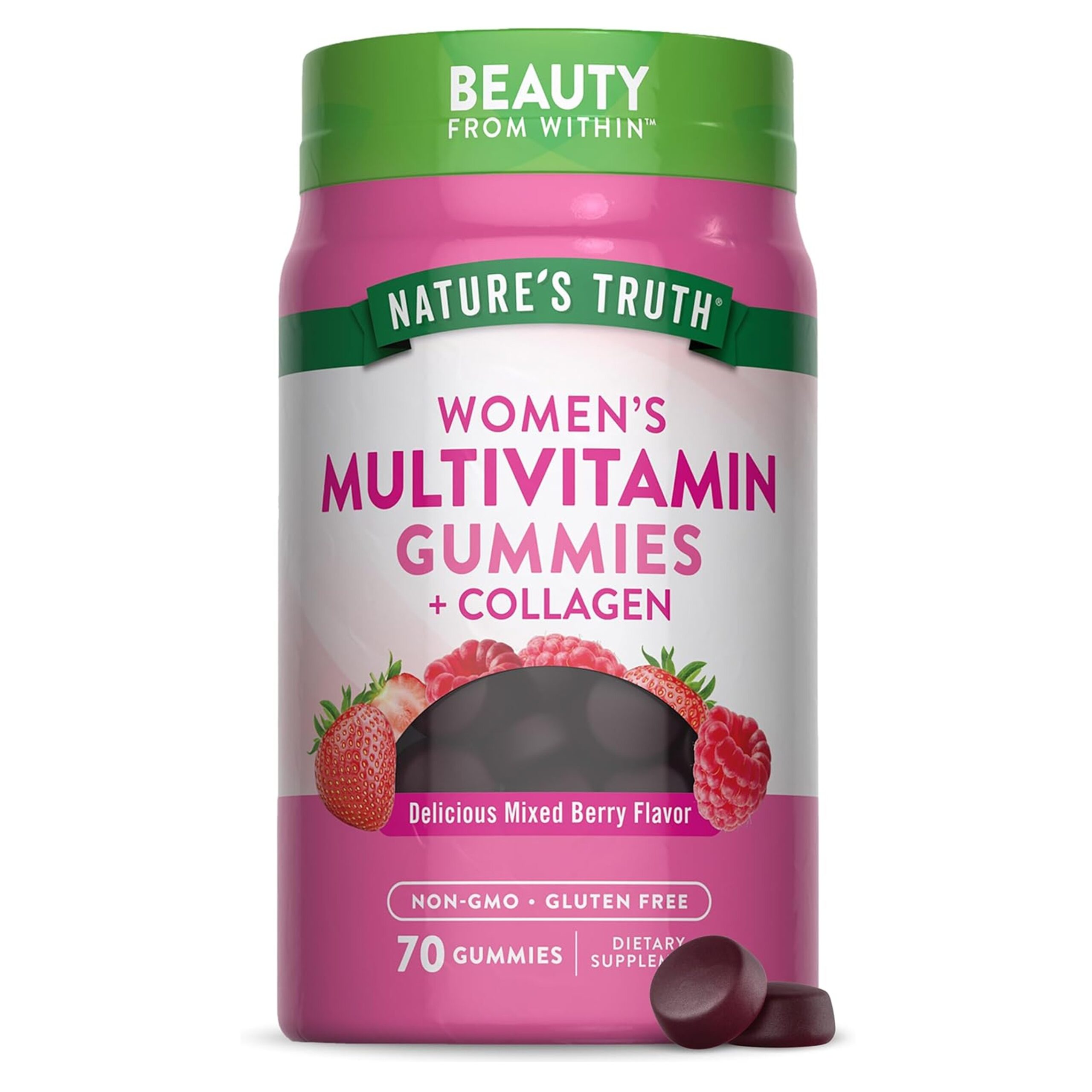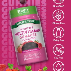 Nature’s Truth Women’s Multivitamin Gummies combine vitamins and minerals in one convenient formula. Each serving has 10 vitamins and minerals in yummy mixed berry-flavored gummies. Formulated specifically for women, these gummies also have collagen – a favorite ingredient among beauty supplements.