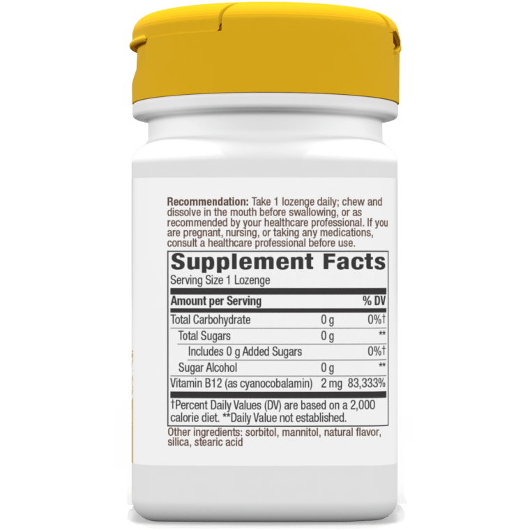 B-vitamins help turn the food you eat into fuel that gives you daily energy for your wellness journey.* Nature’s Way Vitamin B-12 cherry flavored lozenges are made with 2,000mcg of vitamin B-12 per serving to help support cellular energy and nerve function