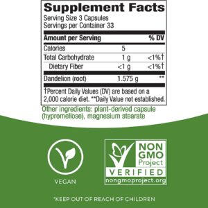 Nature’s Way Dandelion Root, 1,575 mg per serving, Non-GMO, Gluten Free, Vegetarian, 100 Capsules