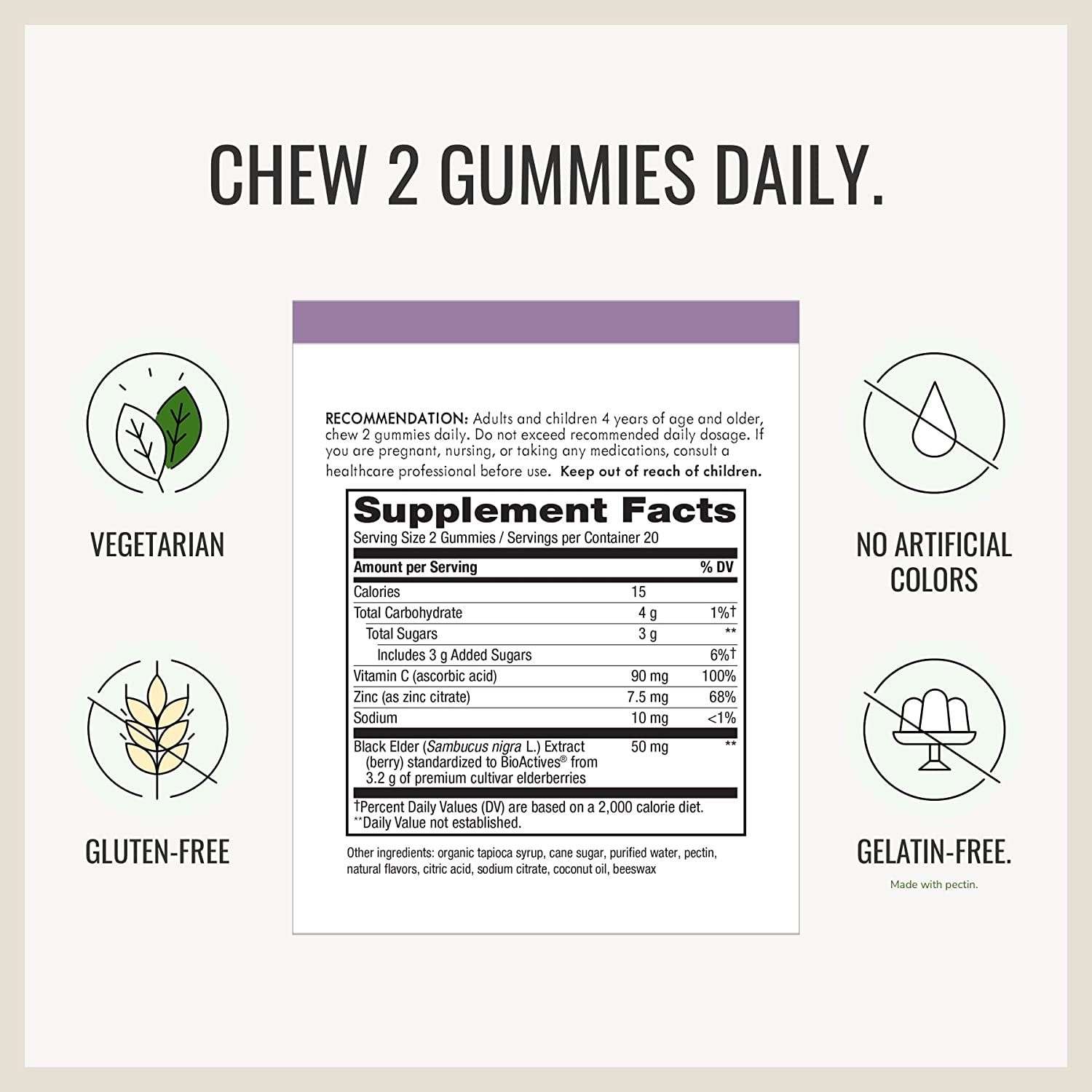 Delicious gummies, bursting with benefits. Sambucus Gummies with black elderberry extract combine zinc and 100% of the recommended Daily Value of vitamin C to support your immune system all year long