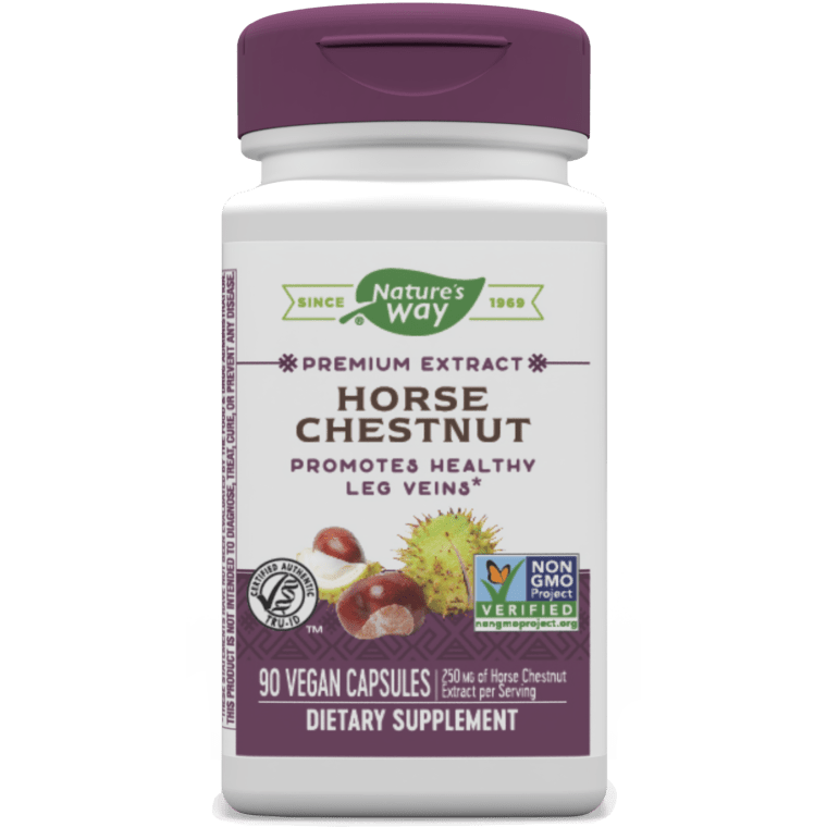 The horse chestnut tree grows around the world, and its seeds have been used for a variety of wellness purposes, including to help support healthy blood vessels.* Nature’s Way Horse Chestnut promotes healthy leg veins with a premium extract of horse chestnut seed, fusing the wisdom of the past with the power of our rigorous testing and high quality standards