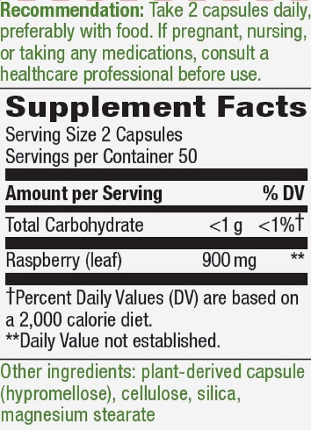 Nature’s Way Red Raspberry Leaves, 900 mg per serving, 100 Vegan Capsules