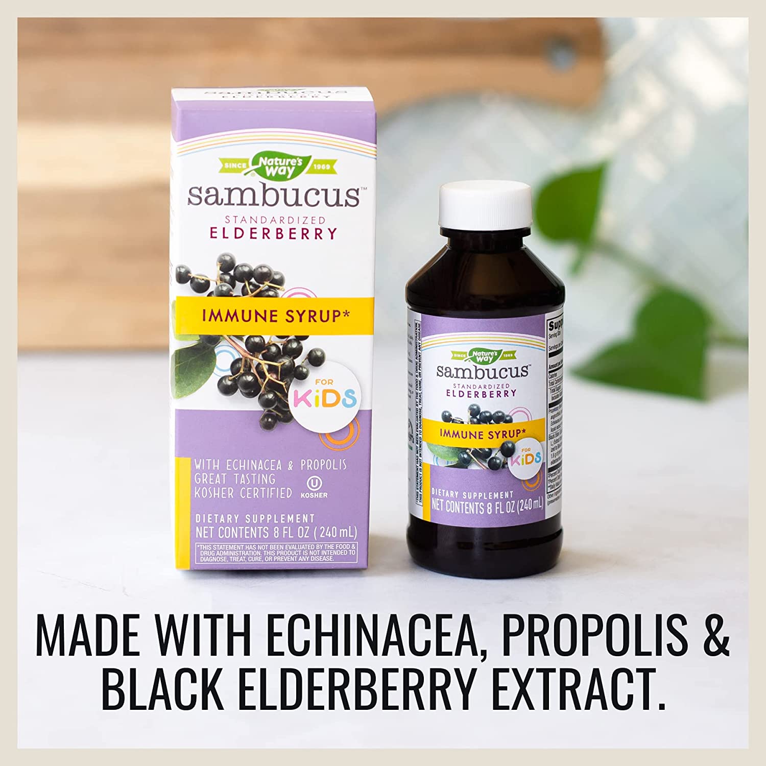 Nature’s Way Sambucus Elderberry Immune Syrup for Kids, Immune Support,Berry Flavor, 8 Fl Oz.