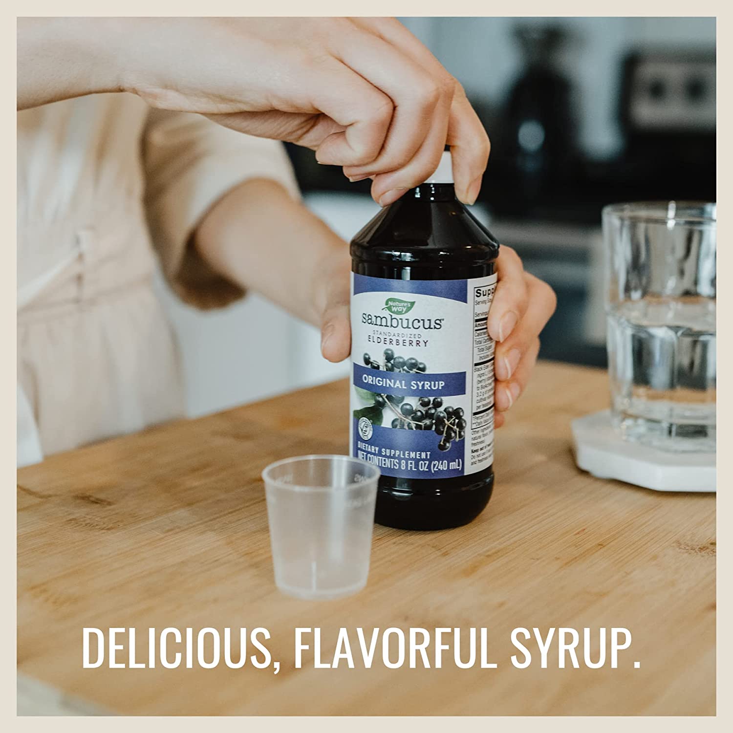 Sambucus Original Syrup is made with premium quality elderberry extract from berries that are naturally richer in flavonoid BioActives®. Elderberries have traditionally been used for immune support, and our delicious syrup helps you feel your best every day.*