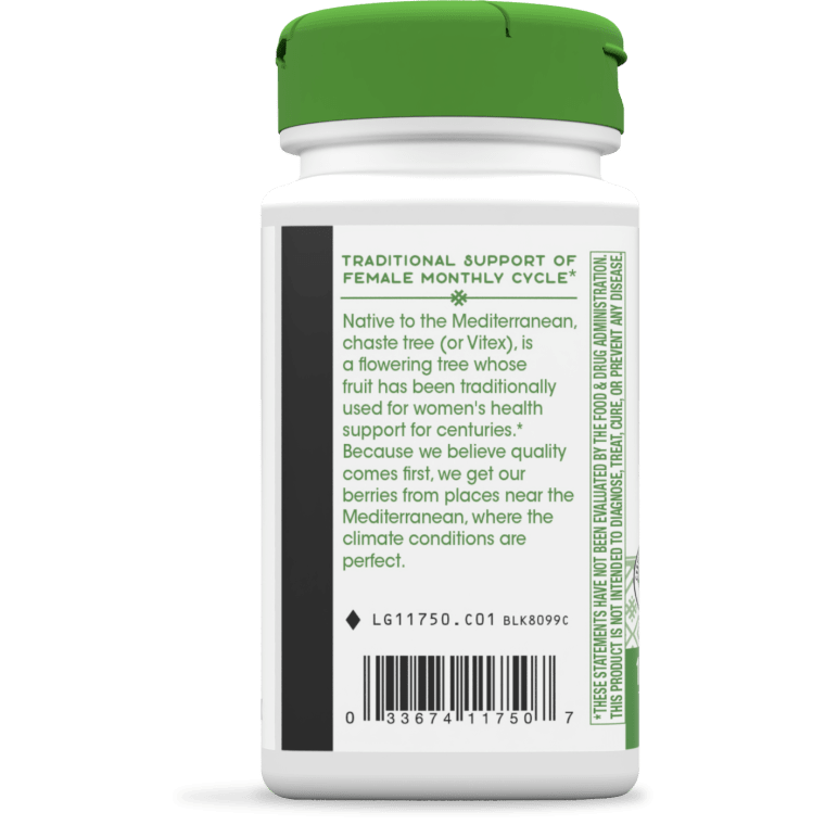 The chaste tree (vitex) is a flowering tree native to the Mediterranean. Its fruit has traditionally been used to support women’s health, including helping to support the monthly cycle.* We source Nature’s Way Vitex Fruit where the berries grow best, giving you the ultimate in quality at every stage of your life.