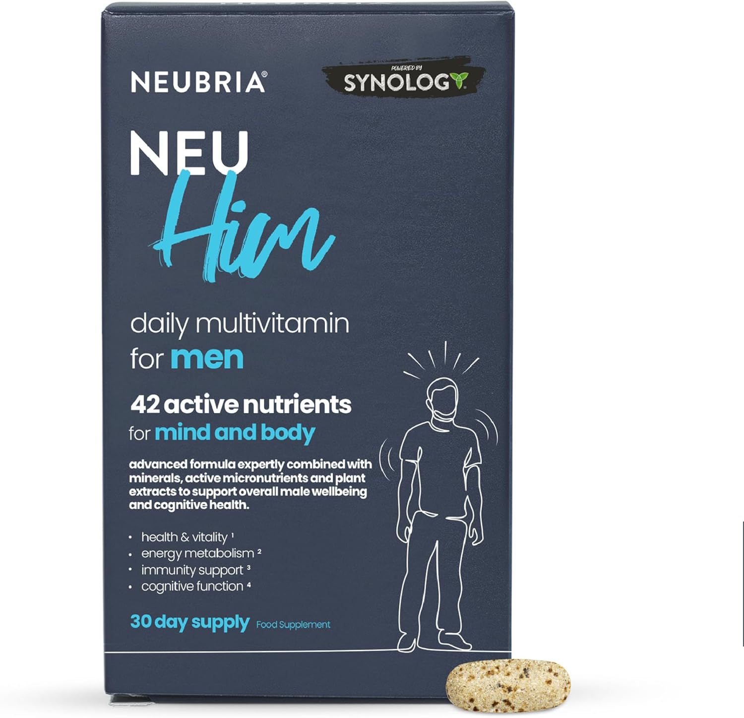 EASY TO TAKE CLEAN MULTI: With just one easy-to-swallow tablet per day, NEUBRIA NEU HIM is ideal for men of all ages. Manufactured in the UK, NEU HIM is vegan, gluten-free, and contains no artificial preservatives or colours.