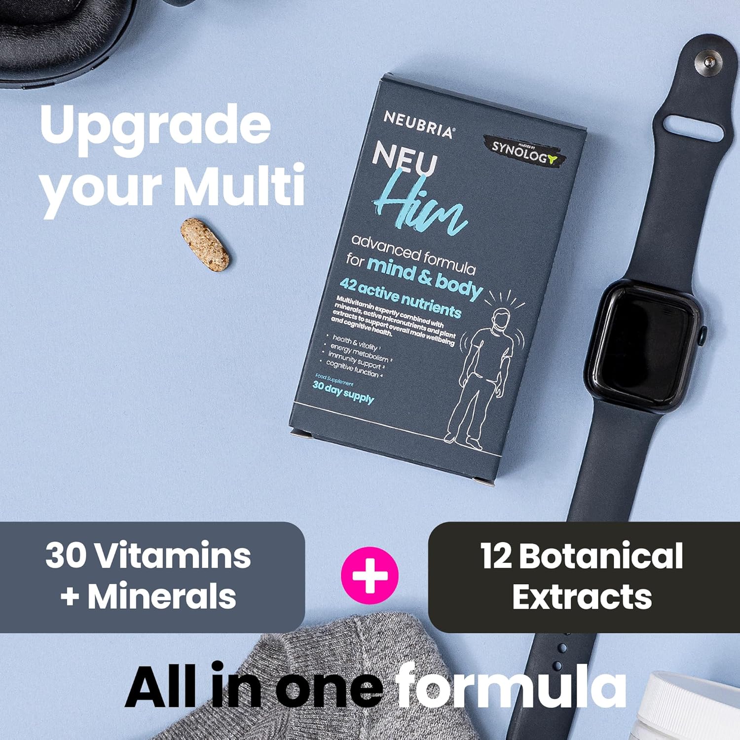 NOT YOUR USUAL MULTI: Neu Him doesn’t just provide vitamins and minerals; it’s packed with powerful plant extracts that set it apart from other men’s multivitamins.