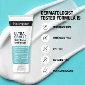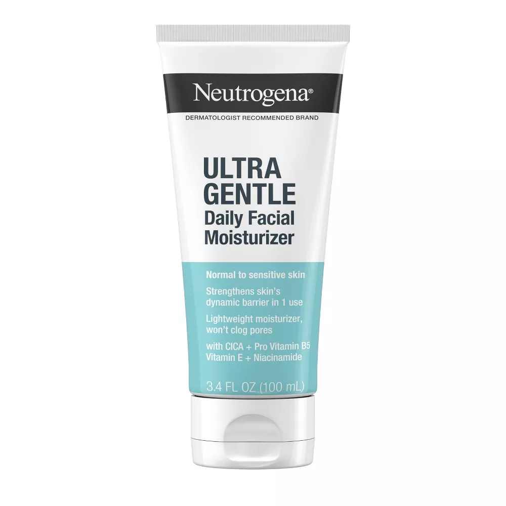 Neutrogena Ultra Gentle Daily Facial Moisturizer conditions skin and helps support skin’s dynamic barrier without clogging pores. The lightweight moisturizer is ideal for sensitive and reactive skin that can appear red, tight, dry, or uncomfortable. This day and night moisturizer with CICA contains a multivitamin complex with Vitamin B3, also known as niacinamide, and Pro-Vitamin B5 to condition skin and Vitamin E, known to fight daily environmental aggressors. The formula is free of fragrance, dyes, parabens and phthalates.