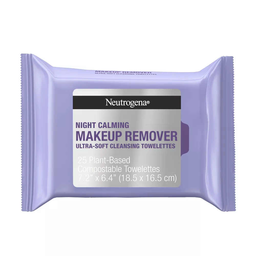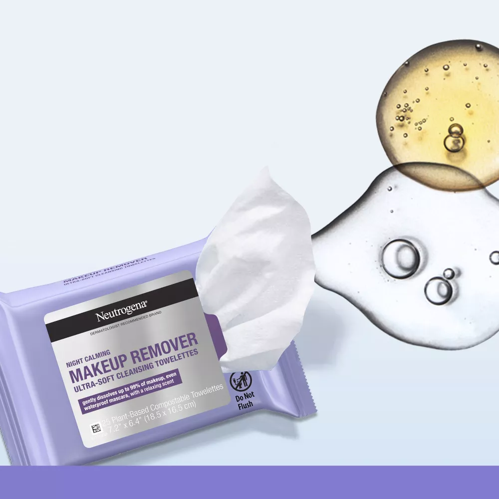 Gently remove makeup & cleanse the day away with Neutrogena Makeup Remover Night Calming Cleansing Face Wipes with a relaxing scent. The nighttime facial cleansing towelettes gently dissolve up to 99% of makeup, even waterproof mascara. Plus, these face wipes lift away oil, dirt, sunscreen & pollution while the relaxing scent calms you before bed. The patented cleansing technology of these pre-moistened facial cleansing towelettes with a triple emollient blend melt away makeup & leave skin refreshingly clean with no heavy residue. Ophthalmologist tested and dermatologist tested, these hypoallergenic cleansing cloths are formulated without parabens, alcohol, sulfates, phthalates, soaps & dyes & are gentle enough even for the delicate eye area.