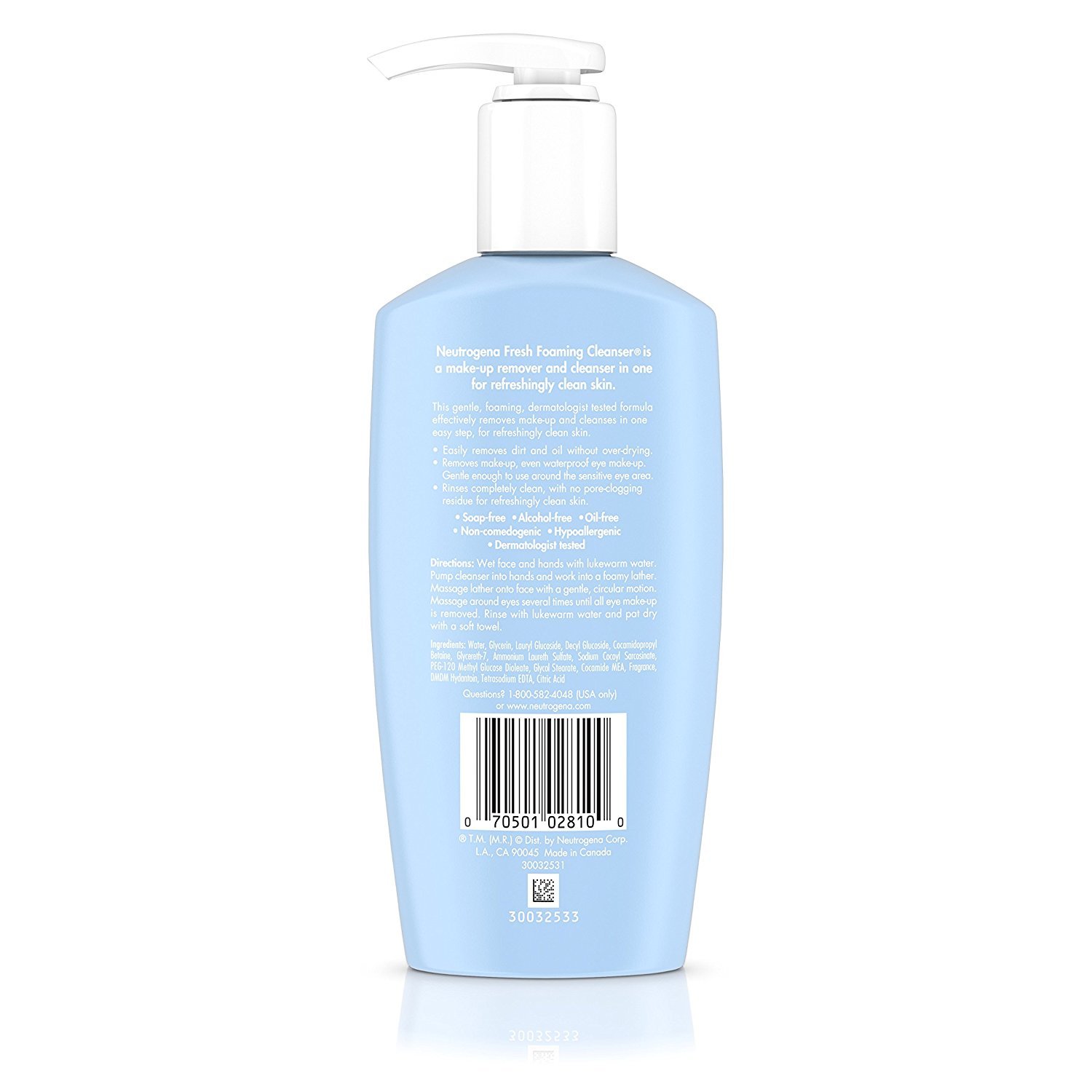 - 6.7-fluid ounce pump bottle of Neutrogena Fresh Foaming Cleanser washes away dirt, oil and makeup in one easy step for refreshingly clean skin