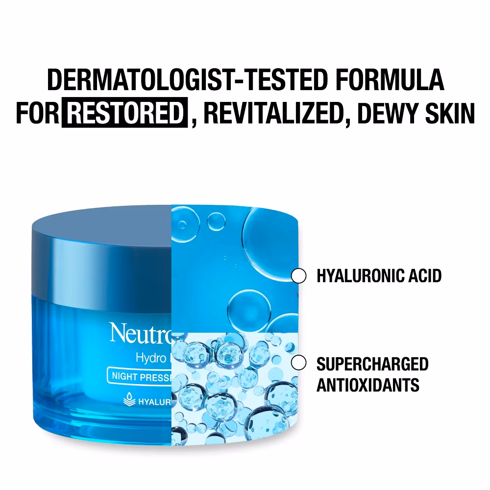 Wake up to restored, revitalized, dewy skin with Neutrogena Hydro Boost Night Pressed Face Serum. Ideal for normal to extra dry skin types, this rich serum instantly melts into skin. This multi-restorative formula complements the skin’s natural nighttime renewal process to deliver long-lasting, deep hydration while you sleep. Formulated with dermatologist-recommended hydrator hyaluronic acid, that binds to water and holds it within skin’s surface, and supercharged antioxidants, known to help fight daily aggressors. Formula is made with our signature Hydro Boost fragrance, and is non-greasy, non-comedogenic, and won’t clog pores. The moisturizing formula has been dermatologist-tested and is clinically-proven to deliver 48-hour hydration. To use, apply the pressed serum generously to cleansed face and neck before bed, and leave on overnight for lasting hydration. Cleanse skin in the morning and follow with your regular morning skincare routine.