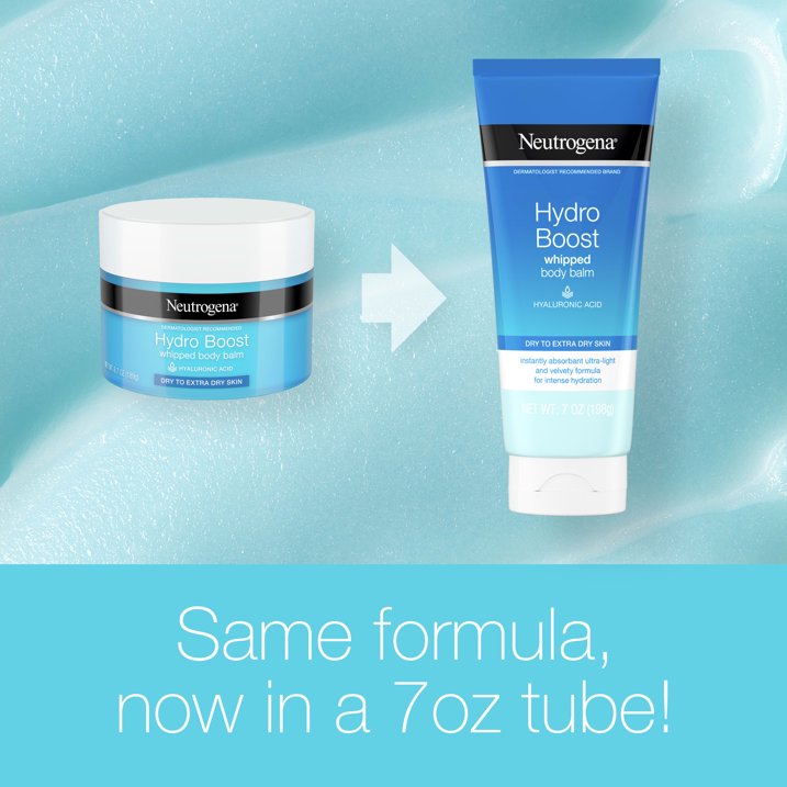 - Neutrogena Hydro Boost Whipped Body Balm with Hyaluronic Acid, to hydrate dry to extra dry skin